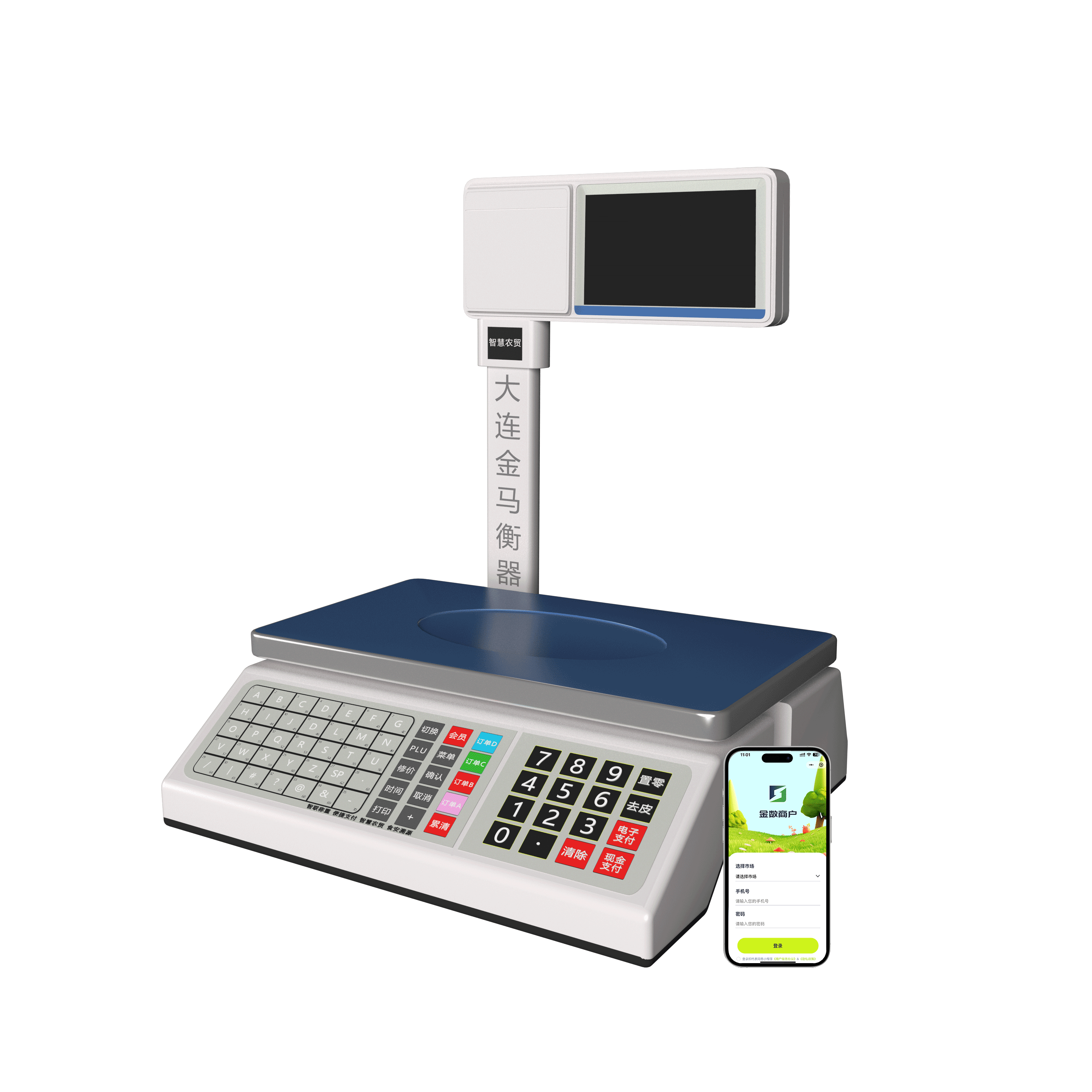 | 商戶小程序 | 配備”金數商戶“小程序,可設置PLU商品信息,查詢經營報表,管理電子秤等 | 配備”金數商戶“小程序,可設置PLU商品信息,查詢經營報表,管理電子秤等 |